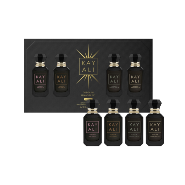 Plongez dans l’univers luxueux du KAYALI Oudgasm Miniature Set, une collection de parfums à base d’oud revisités avec une touche moderne et addictive.